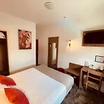 Logis Le Passiflore Cognac의 객실에는 카페트 바닥이 있습니다.